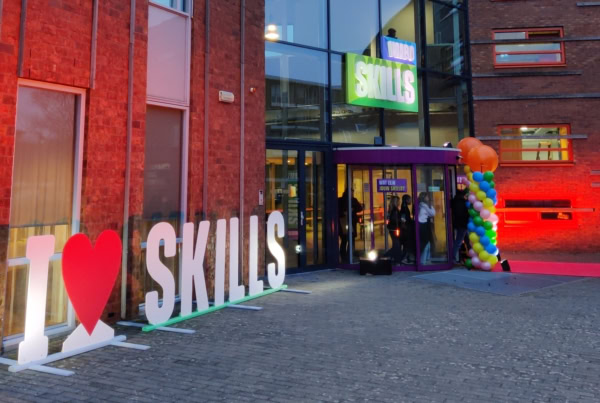 Afgelopen schooljaar heeft het profiel BWI een zeecontainer voor de deur gekregen. Deze is bedoeld om grote werkstukken in op te slaan, extra voorraden hout, maar bijvoorbeeld ook de betonmolen die we maar 1x per jaar gebruiken. Op zich staat het niet zo netjes, zo’n container voor de deur, maar als hij geschilderd is in de kleuren van ons nieuwe Skills logo, is het in ene een mooie eye-catcher. Voor het keuzedeel schilderen zijn de leerlingen van 4BWI dit jaar druk bezig geweest om de container te voorzien van een nieuw verfsysteem. Deze week is de laatste hand gelegd (op de achterkant na) aan de container door het dak te voorzien van de Skills letters. Door het schilderen van het dak was het doel van de klas om zichtbaar te worden op Google Earth. Binnenkort, na een nieuwe update van Google, weten we of het gelukt is en of het te lezen is. Het zal er om hangen. Maar het idee was al grappig genoeg, of het nu lukt of niet.